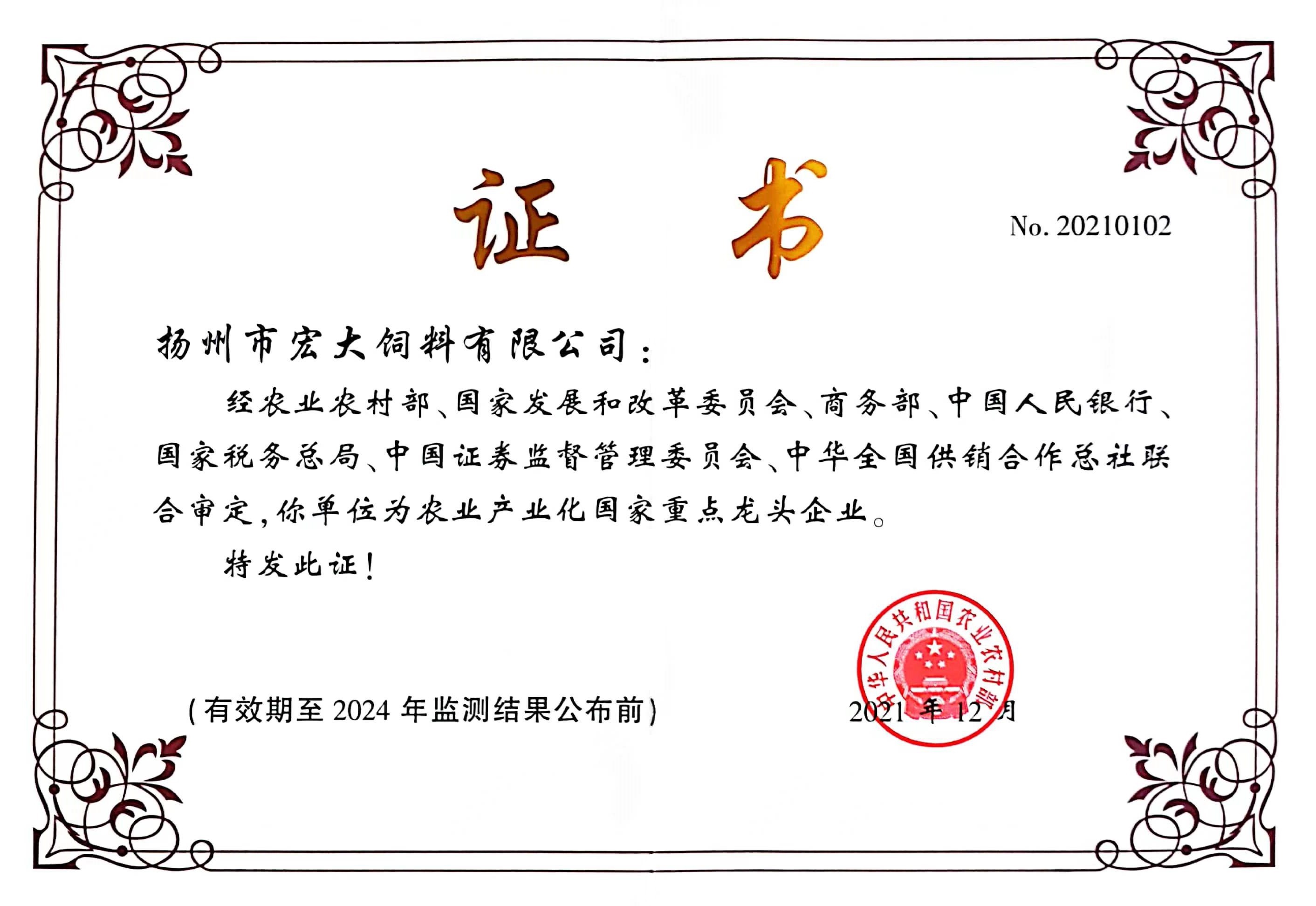 先后榮獲江蘇省飼料質(zhì)量合格產(chǎn)品、江蘇省名牌產(chǎn)品、揚(yáng)州市消費(fèi)者滿(mǎn)意商品、揚(yáng)州市質(zhì)量計(jì)量信得過(guò)產(chǎn)品等稱(chēng)號(hào)。