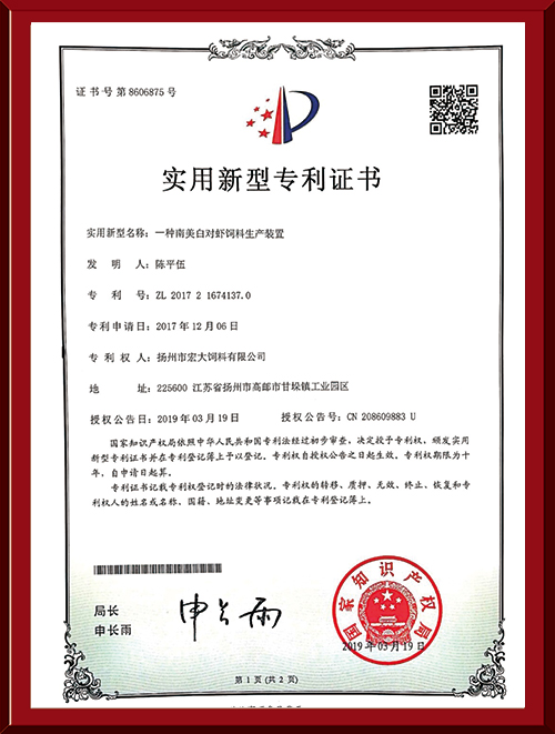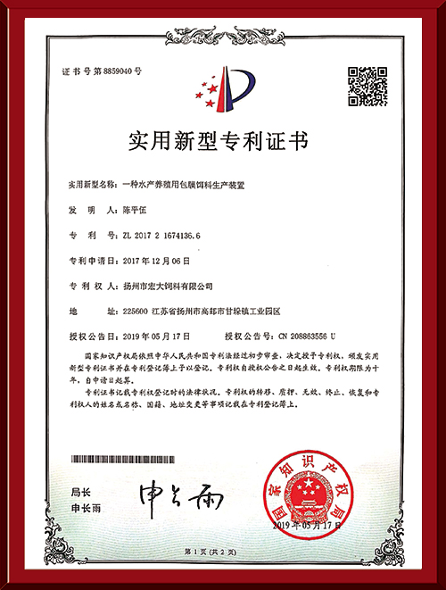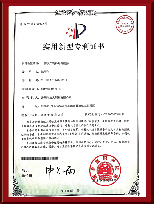 揚(yáng)州市宏大飼料有限公司 揚(yáng)州市宏大飼料有限公司是一家集科研與生產(chǎn)為一體的大型民營(yíng)企業(yè),座落在魚米之鄉(xiāng)高郵東郊,傍依郵興公路、澄子河,水陸交通便捷,于2002年建成投產(chǎn),占地面積60畝,固定投資1.5億元。現(xiàn)有7條生產(chǎn)線,其中時(shí)產(chǎn)15噸高檔水產(chǎn)膨化生產(chǎn)線2條,均采用國(guó)內(nèi)先進(jìn)的真空后噴涂技術(shù)和低溫烘干技術(shù)(飼料內(nèi)的各種營(yíng)養(yǎng)不受破損)、臺(tái)灣宜大高檔蝦料生產(chǎn)線2條和魚飼料生產(chǎn)線3條。