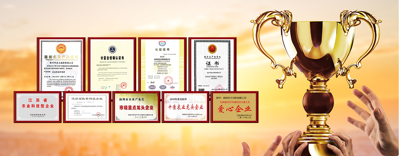 先后榮獲江蘇省飼料質(zhì)量合格產(chǎn)品、江蘇省名牌產(chǎn)品、揚(yáng)州市消費(fèi)者滿意商品、揚(yáng)州市質(zhì)量計(jì)量信得過(guò)產(chǎn)品等稱(chēng)號(hào)。